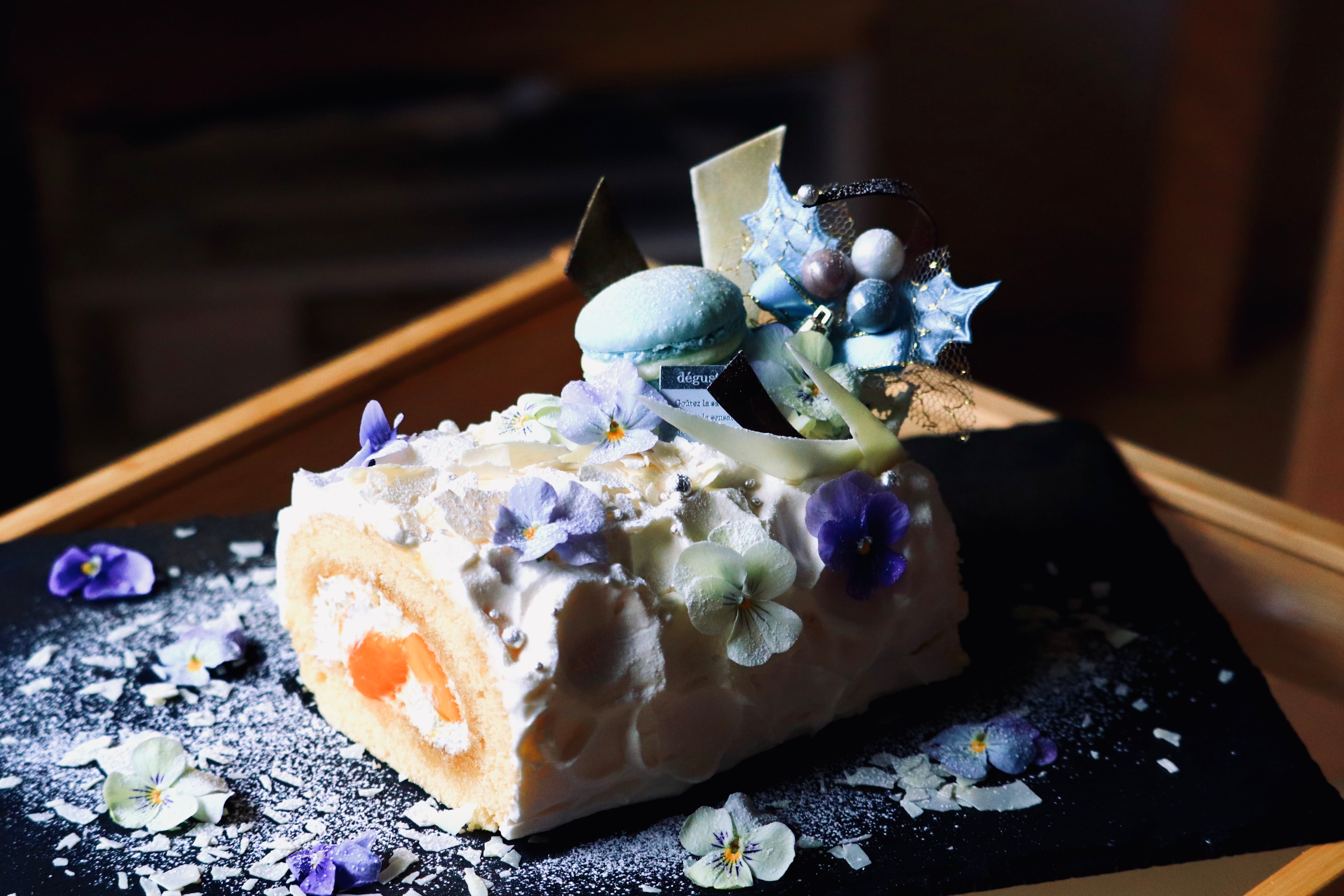 4つの花の香りと味わいを散りばめた、銀白のブッシュド・ノエルをお届けします。